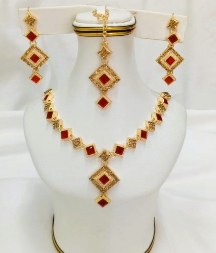 Beautiful Zircon Stone Necklace Set with Earrings and Tikka (ZV:27712)