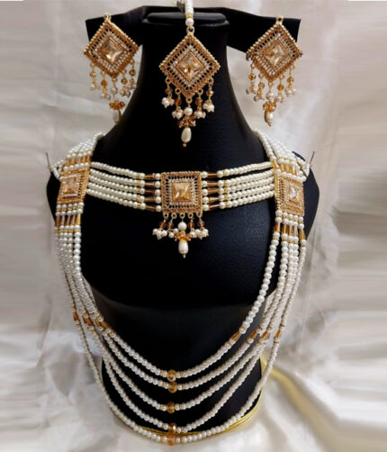 Beautiful Pearl Choker Mala Set with Earrings and Tikka (ZV-2221)Beautiful Pearl Choker Mala Set with Earrings and Tikka (ZV-2221)