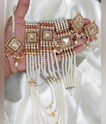 Indian White Choker Necklace Set and Pearl Mala Set (ZV:23805)