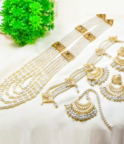 Pearl Mala SetBeautiful White Pearl Mala Combo Jewelry Set with Earrings and Bracelet (ZV:5566)