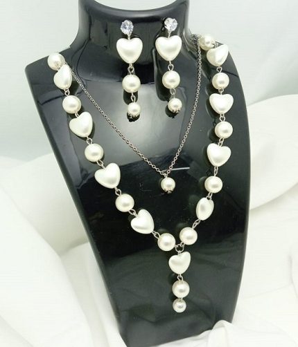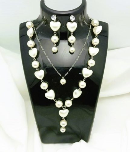 Pearl Heart Shape Double Layered Necklace Set with Earrings (ZV:29032)Pearl Heart Shape Double Layered Necklace Set with Earrings (ZV:29032)