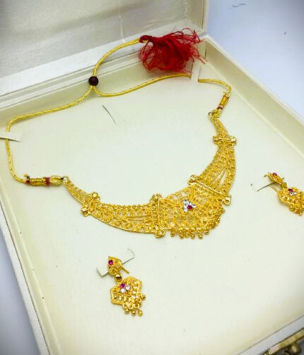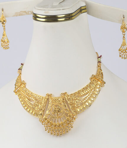 Golden Indian Traditional Necklace Set with Earrings and Bindia (ZV:34522)
