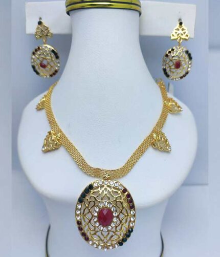 Elegant Maroon and Golden Zircon Necklace Set (ZV:34490)Elegant Maroon and Golden Zircon Necklace Set (ZV:34490)