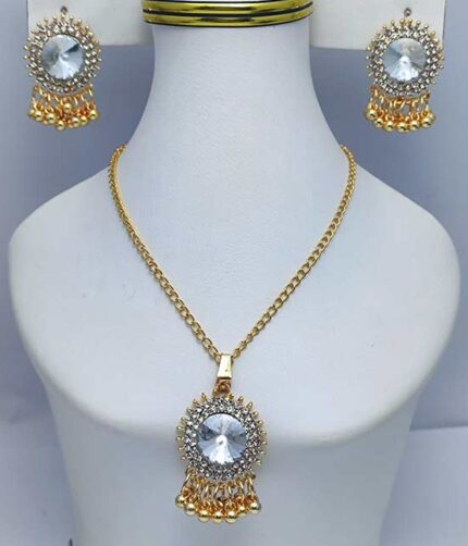 Zircon Necklace Set With Earrings and Bindia (ZV:1532) For WomenZircon Necklace Set With Earrings and Bindia (ZV:1532) For Women