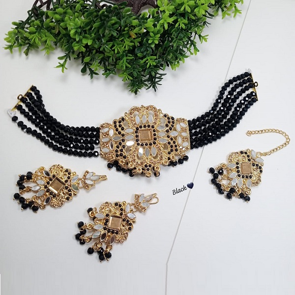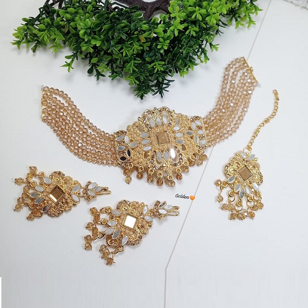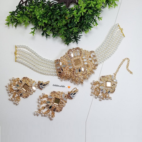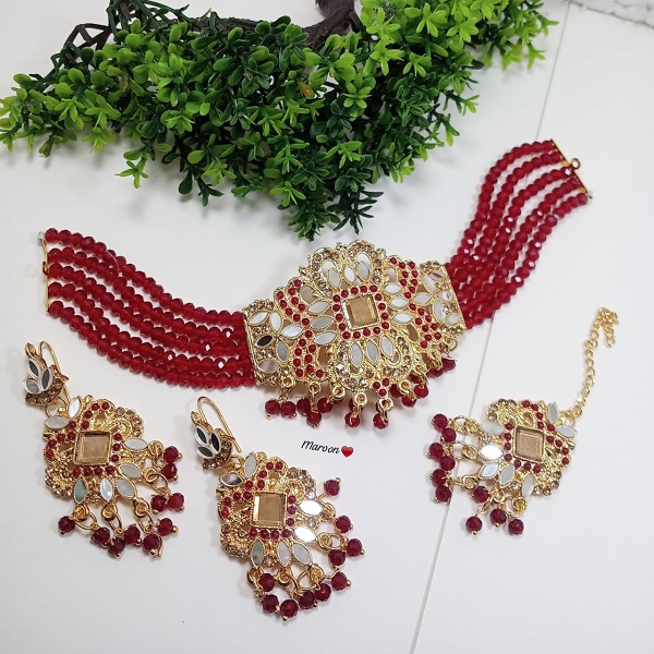 Beautiful Farshi Kundun Stone Choker Set with Earrings and Bindia for Women