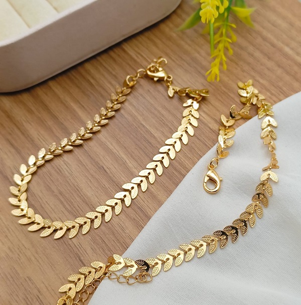 Beautiful Golden Leaf Style Anklet Payal Pair for Women Feet
