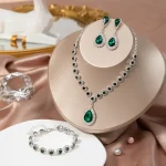 Style Zircon & Stone Necklace Jewelry Set With Earrings & Bracelet For Women