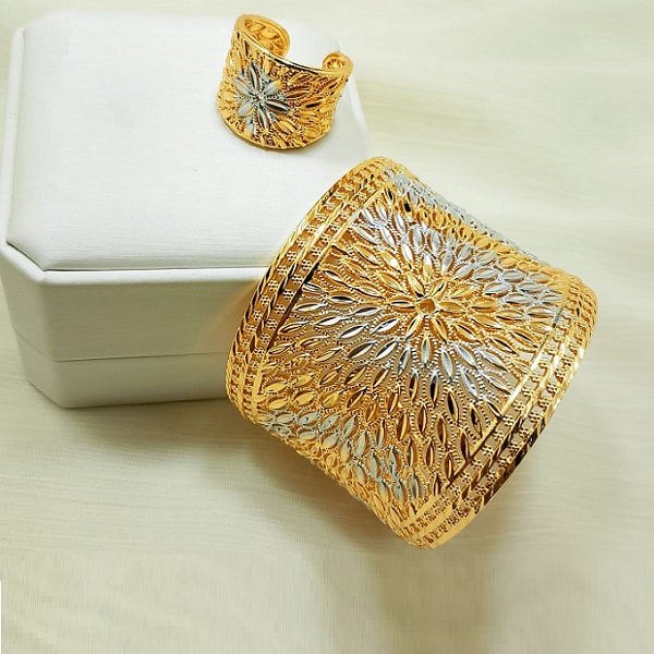 Beautiful Printed 2 Tone Adjustable Kara with Ring Set For Women