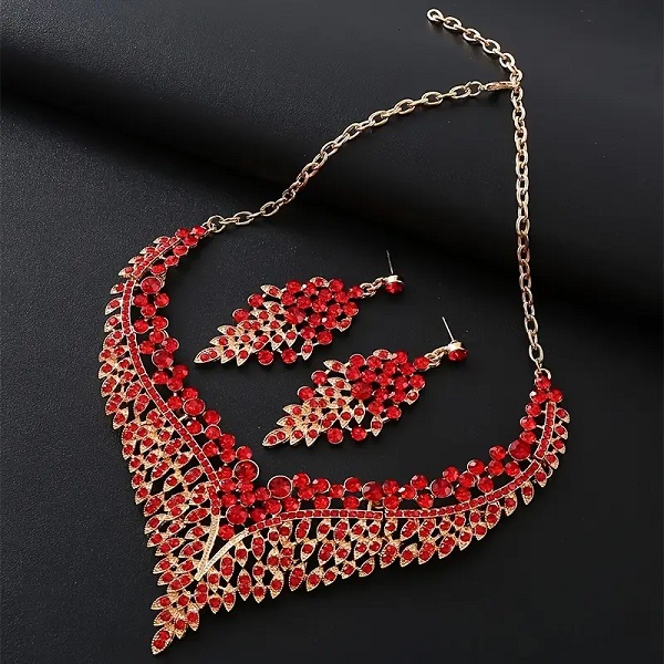 Beautiful Red Zircon Necklace Set With Earrings For Women