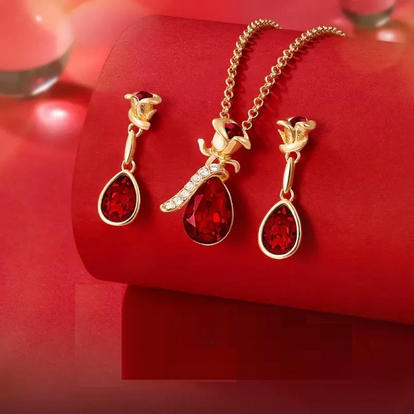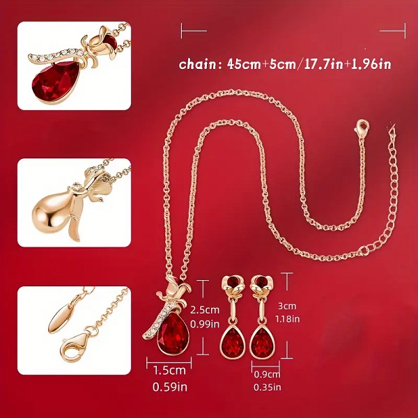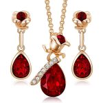 Beautiful Rose Flower Zircon Pendant Necklace Set With Earrings For Girls