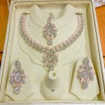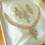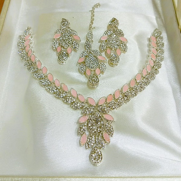 Beautiful Silver Pink Zircon Necklace Set with Earrings and Bindia For Women