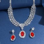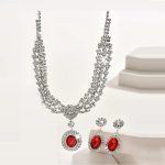 Be the first to review “Beautiful Silver Red Wedding Gemstone Necklace Set with Earrings (ZV:30589)”