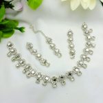 Beautiful Silver Zircon Kundan Necklace Set with Earrings and Bindia For Girls