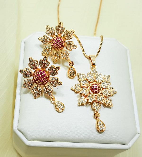 Beautiful Zircon Locket Set with Earrings For Girls