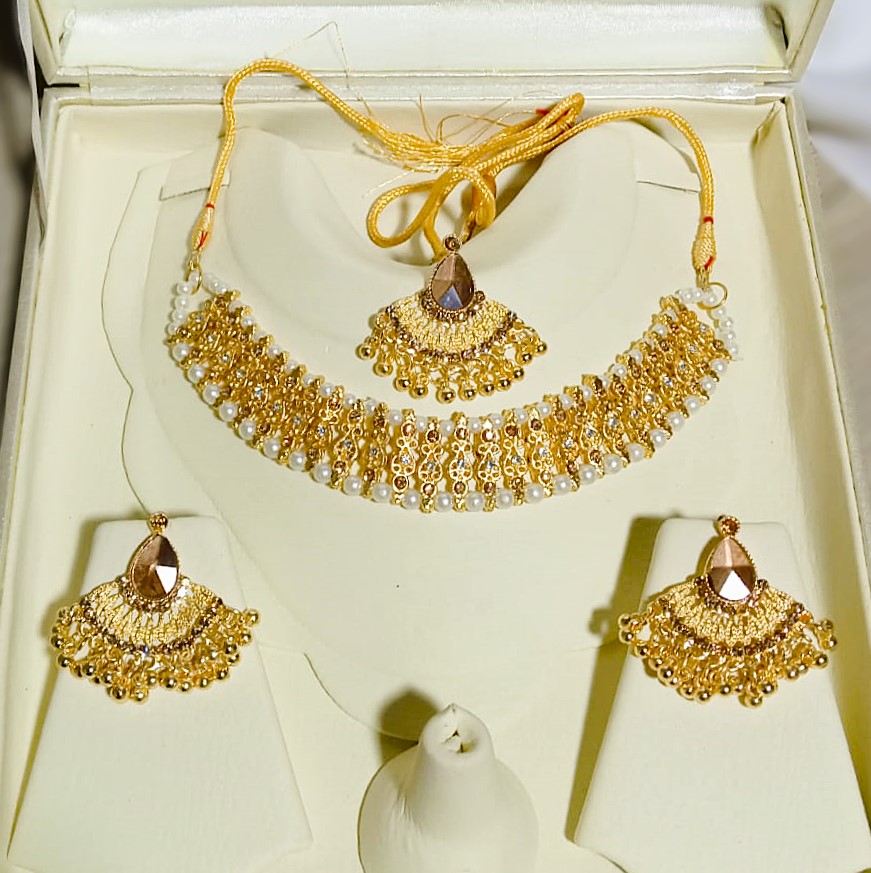 Beautiful Zircon Moti Gajra Choker Set With Earrings and Tika For Women