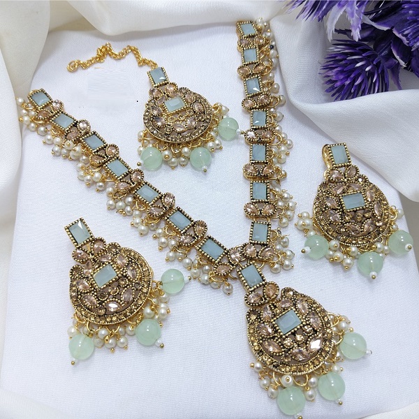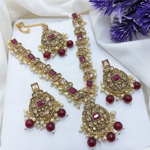 Beautiful Zircon Stone Necklace Set with Earrings and Tikka For Ladies