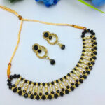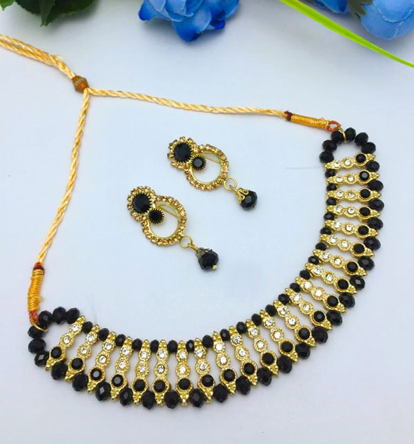 Black & Golden Choker Necklace Set With Earrings for Women