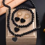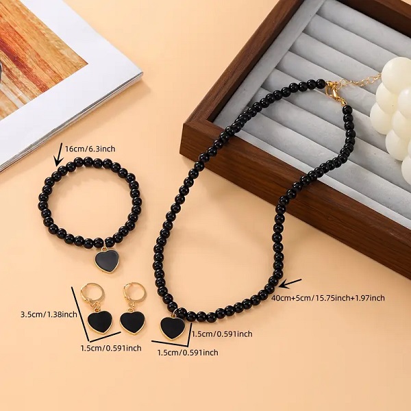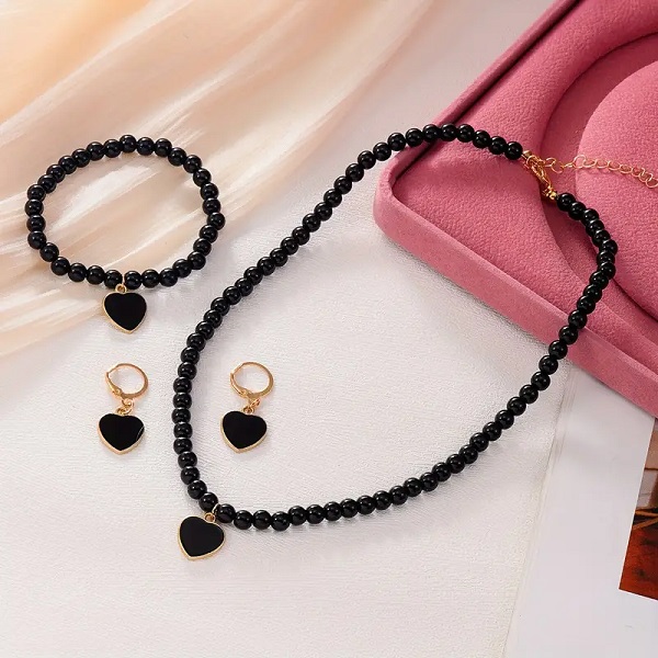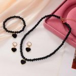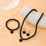 Black Heart Pendant Necklace Combo Set with Bracelet and Earrings For Women