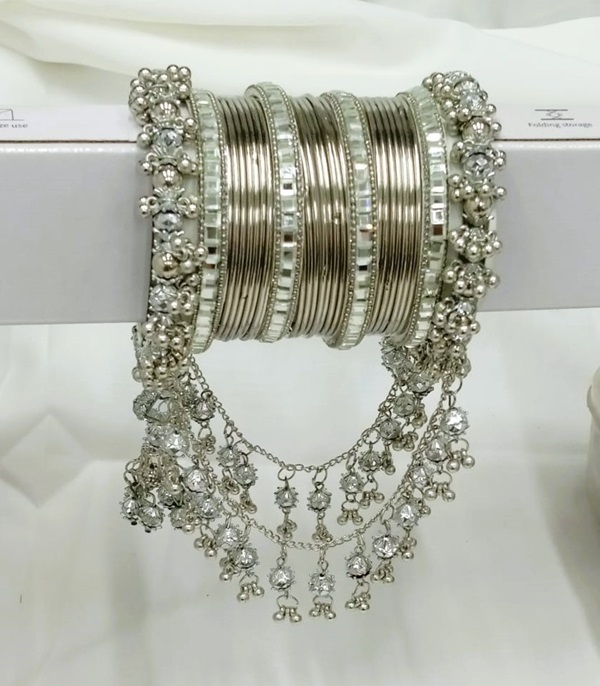 Bridal Jhoola Style Mirror Steel Bangles Set For Women