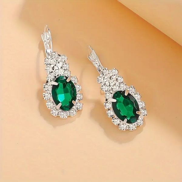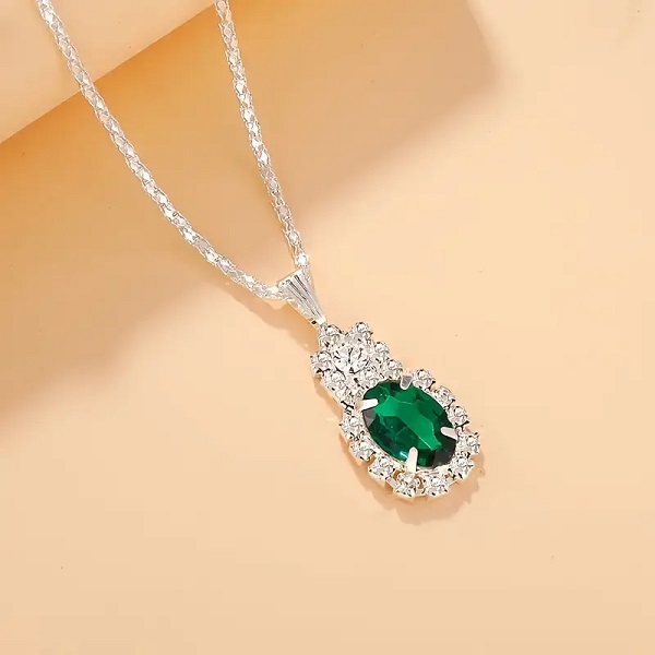 Elegant Fashion Green Oval Necklace Set with Ring, Earrings & Bracelet For Ladies