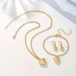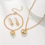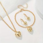 Elegant Heart Pendant Bracelet Necklace Jewelry Set with Earrings For Women