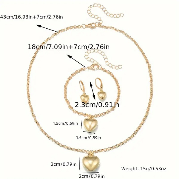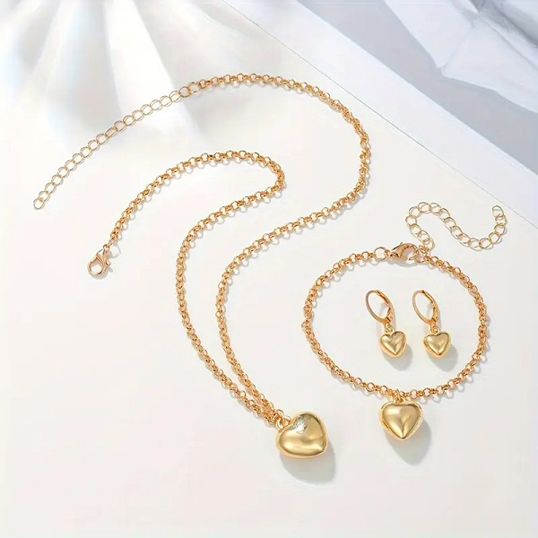 Heart Pendant Necklace SetĀ is a beautiful and versatile accessory for any occasion. Featuring heart-shaped pendants, bracelets, and earrings, it adds elegance to your dress. Perfect for weddings, parties, or festive events even regular use, this high-quality set is both durable and stylish. Available at an affordable price in Pakistan, it offers great value for premium jewelry in Pakistan.