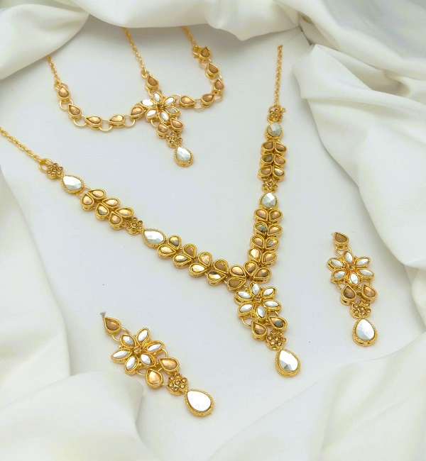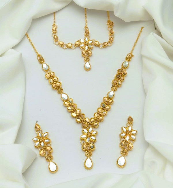 Elegant Indian Kundan Necklace Set with Stylish Tika & Earrings for Girls