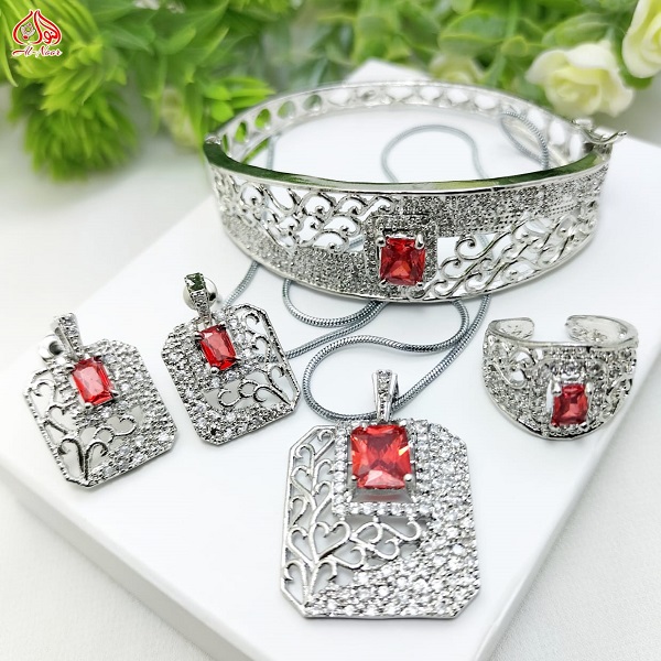 Stylish Indian Red AD Zircon Combo Set For Ladies