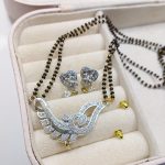 Elegant Indian Silver Zircon Pendant Set with Black Mala and Earrings For Girls