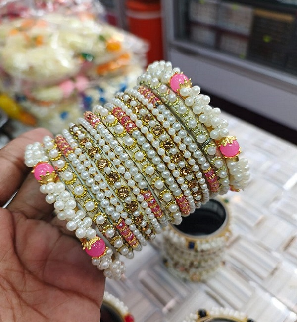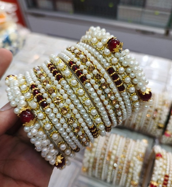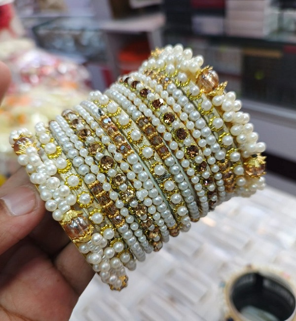 Elegant Pearls Crystal Bangles Set For Women