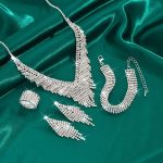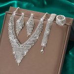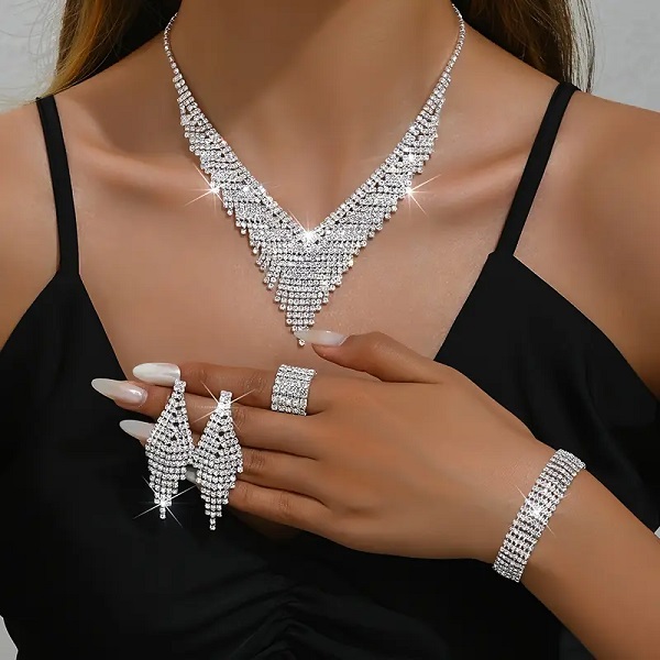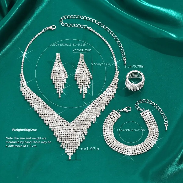 Elegant Silver Zircon Necklace Set with Earrings, Bracelet and Ring For Women