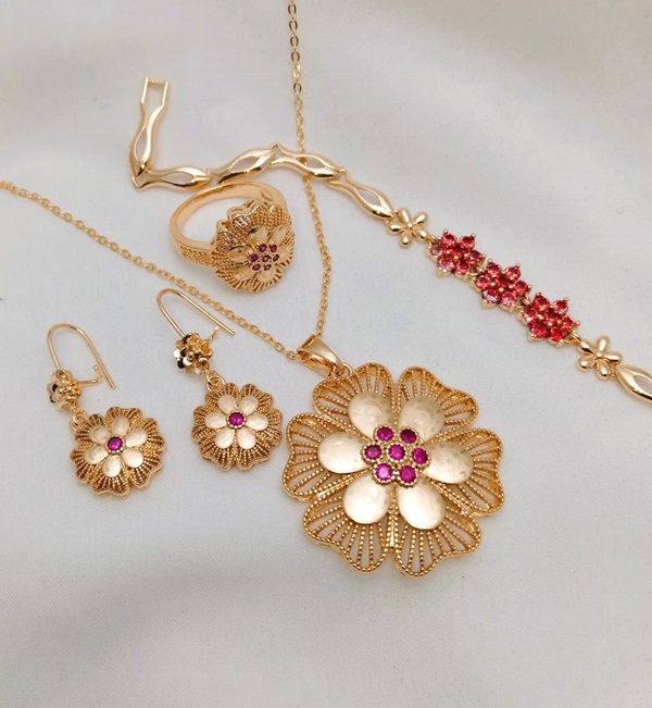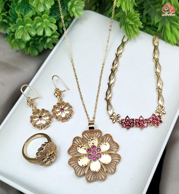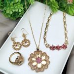 Elegant Zircon Gold Plated Chain Locket Combo Set With Earrings, Bracelet and Ring For Girls