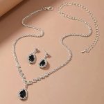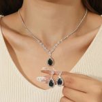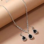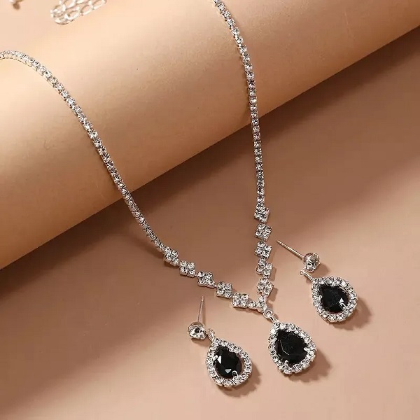 Sparkle Silver AD Zircon Black Necklace Set with Earring For Women