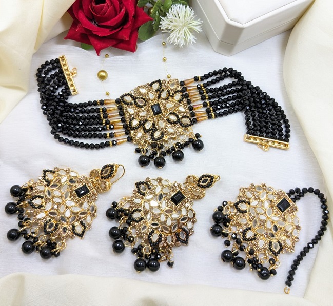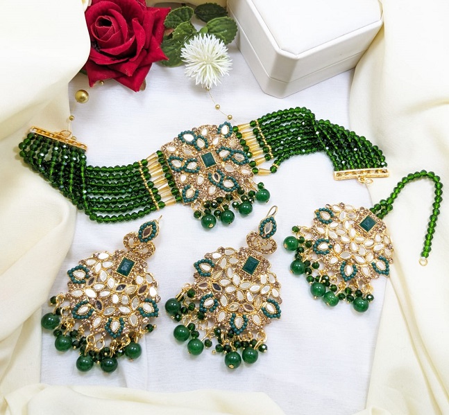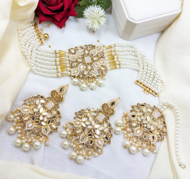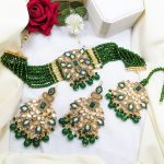 Farshi Kundun Zircon Choker Set with Earrings and Teeka For Women