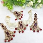 Farshiya Kundun Zircon Gajra Choker Necklace Set with Long Earrings and Bindia For Women