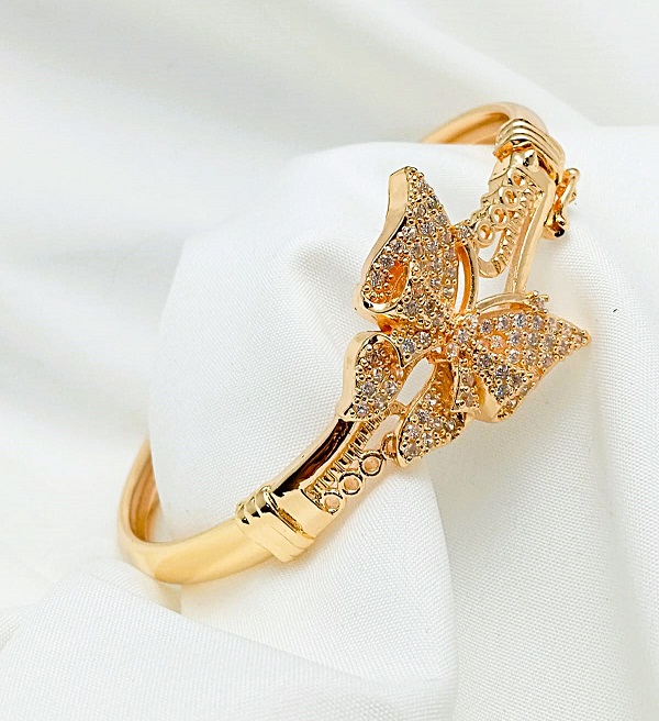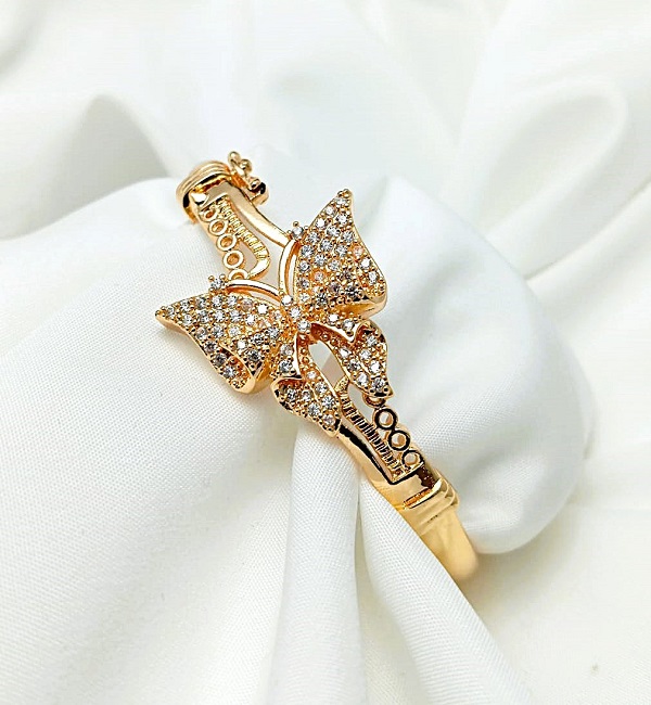 Gold Plated Zircon Butterfly Adjustable Kara Bracelet For Girls