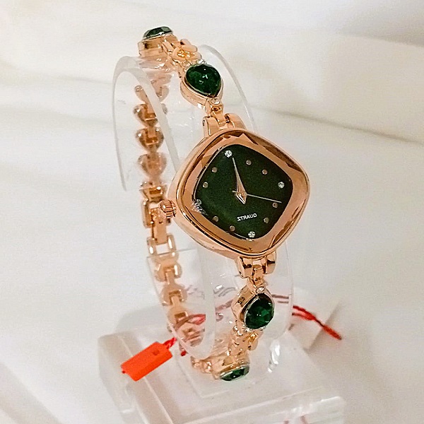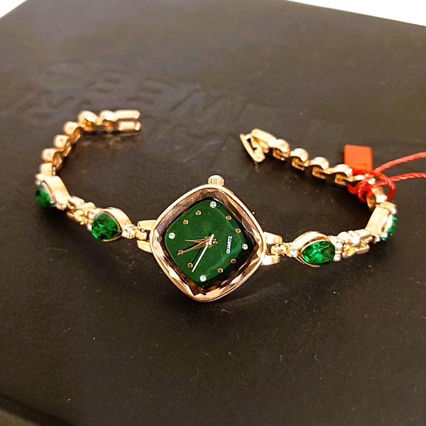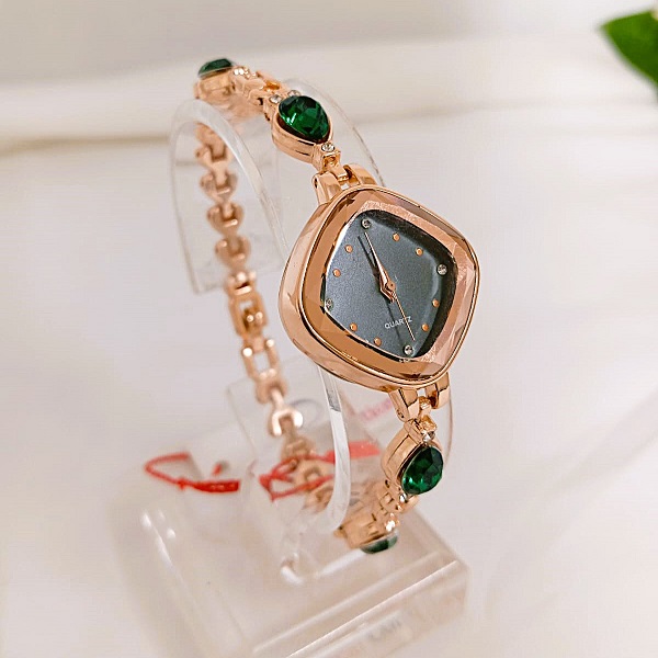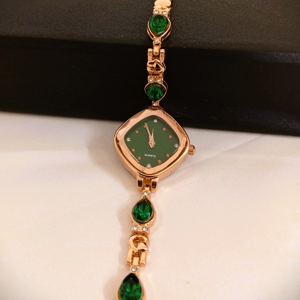 Golden Green Zircon Watch For Girls