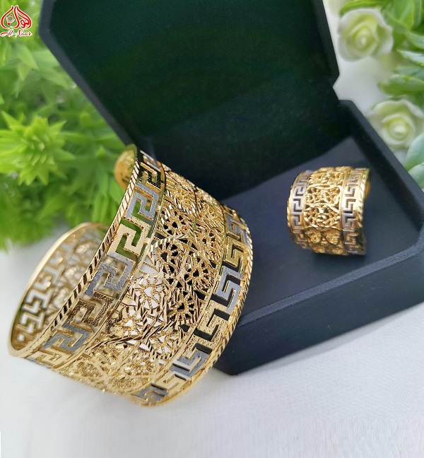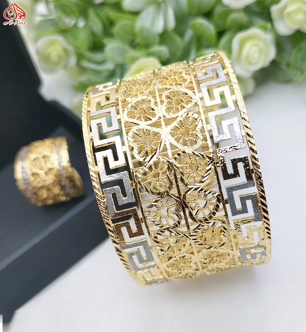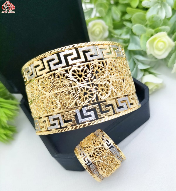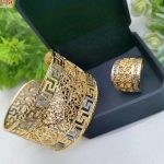 Golden Printed 2 Tone Adjustable Kara with Ring Set For Ladies