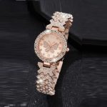 Golden Watch Gift Pack with Zircon Bracelet, Chain Locket, Ring and Tops For Women