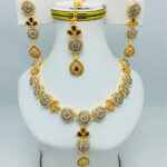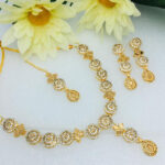 Golden Zircon Necklace Fashion Jewelry Set with Earrings and Bindia for Women and Girls
