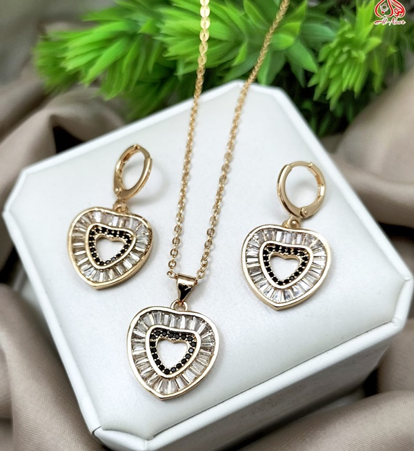 Indian Zircon Gold Plated Heart Shape Locket Set with Earrings For Girls