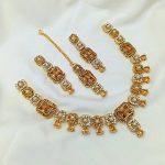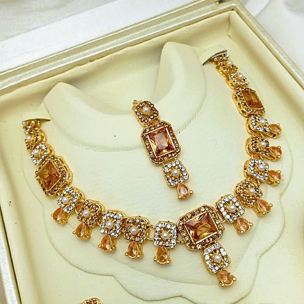 Indian Zircon Golden Necklace Set with Earrings & Bindia For Women