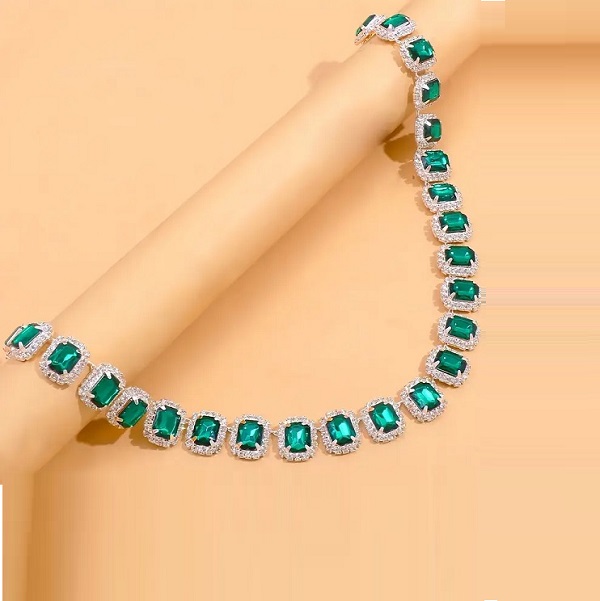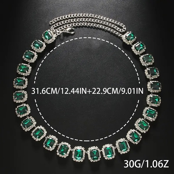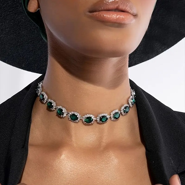 Luxurious Elegant Green Artificial Diamond Choker Necklace For Women