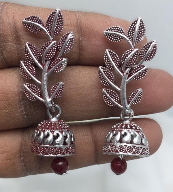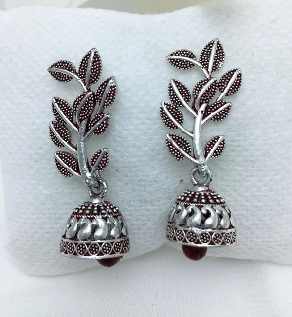 Maroon Silver Leaf Style Jhumki Earrings Set For Girls