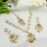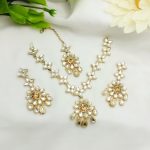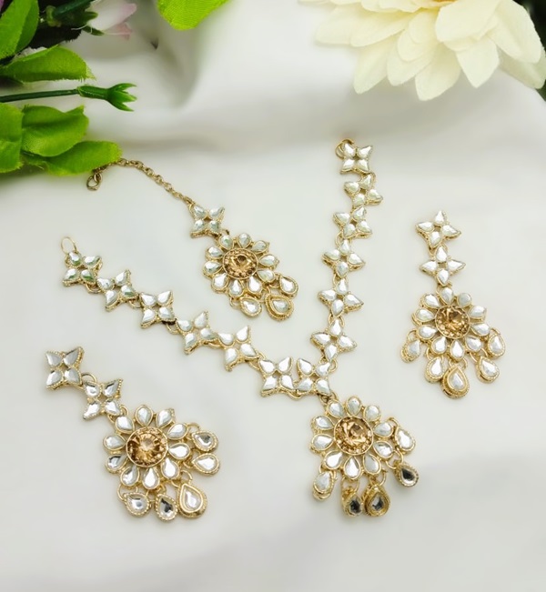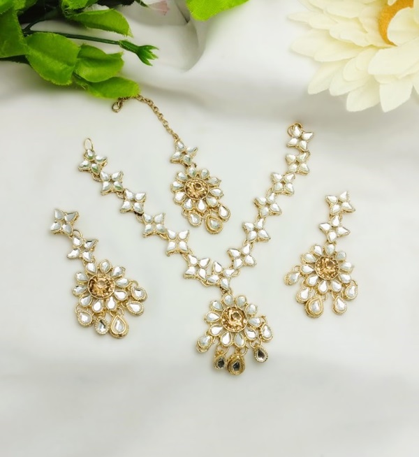 Stylish Kundan Necklace Set with Earrings and Teeka for Girls and women