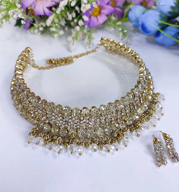 Zircon Choker Necklace Set With Earring (ZV:4409)