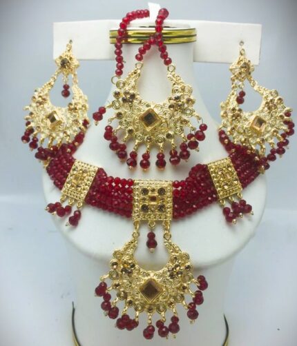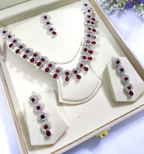 Stylish Maroon Necklace Jewelry Set with Earrings and Bindia (ZV:4821)
