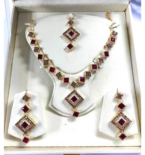 Zircon Necklace Jewelry Set with Earrings and Bindia For Ladies