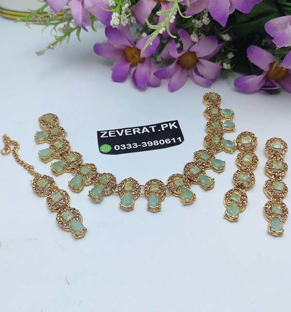 Light Green Zircon Party Necklace Set (ZV:5486)