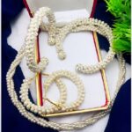 Beautiful White Pearl Mala Combo Jewelry Set with Earrings and Bracelet for Girls and Women